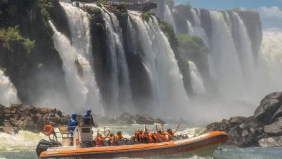 Тази невероятна обиколка е разделена на три етапа: джунгла, пътека и лодка. Приключението започва с 2 км. каране през джунглата на Национален парк Игуасу, където ще бъдем транспортирани от екологични превозни средства, задвижвани с електричество, които освен че са безшумни, гарантират панорамна гледка към безбройните видове растителност, които изграждат маршрута . Следва 600-метрова разходка през гората и беседа за местната фауна и флора. На този етап от обиколката контактът с природата е по-голям и имаме шанс да видим животните, които обитават парка! Краят на пътеката води до палубата - структура, която има магазин за сувенири, бани и стаи за съхранение на багаж, за да оставим вещите си, докато завършим прехода. Третия етап обиколката става още по-вълнуваща: нашият електрически трамвай ще ни транспортира до кея на река Игуасу, откъдето ще отпътуваме с една от двумоторните лодки за невероятна гледка и възможност за потапяне във водопада Игуасу!