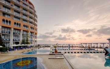 Просторният лоби-бар е разположен във фоайето на хотела и предлага на своите гости прекрасна панорамна тераса с изглед към плажа и морето.