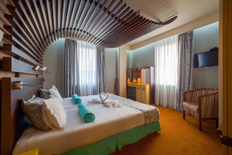 Стаи: СПА Хотел Езерец Благоевград предлага на своите гости настаняване в 45 чудесно обзаведени двойни стаи, 2 малки и 1 голям апартамент /стандарт/, 1 малък апартамент /лукс/ и 1 голям апартамент /лукс/, оборудвани с централен климатик с индивидуално управление, цифрова телевизия, високоскоростен интернет, телефон, мини бар и модерна баня с вана. За по-бърз достъп до хотелските стаи е предвиден панорамен асансьор. В СПА Хотел Езерец Благоевград ще се почувствате като у дома си.