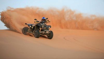 Следобед ще бъдете взети от лобито на хотела и отведени до Quad Bike Center, където ще получите подробен инструктаж за безопасност и кратко обучение. След пробно каране и с поставена защитна каска, е време да започнете своето пустинно приключение с АТВ, което продължава около час и половина.