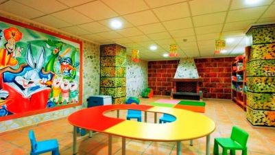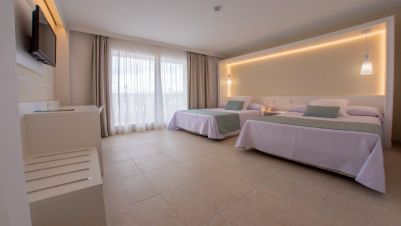 Семейства с деца — големи стаи с две големи легла, детски клуб, анимация и плитък пясъчен плаж пред хотела.