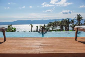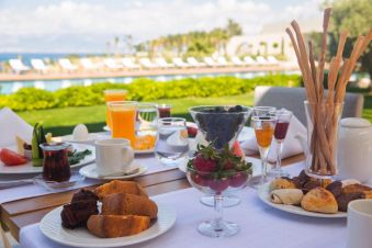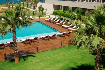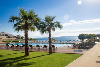 Основен ресторант, а-ла-карт ресторант, лоби бар, бар при басейна, снек бар на плажа, открит басейн, СПА център (2500 м2, термален басейн, таласо басейн, закрит басейн, джакузи, турска баня, парна баня, сауна, солна стая, леден фонтан), фитнес център, 2 тенис корта, 1 баскетболно игрище, игрище за мини футбол,конферентен център, паркинг. За децата: детски басейн.