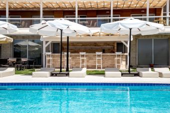 Чадъри, шезлонги, матраци и плажни кърпи на плажа и при басейна - безплатно.