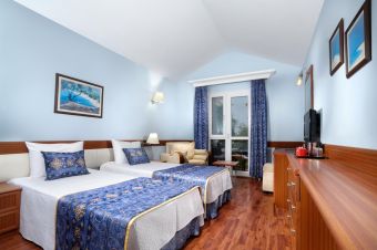 Хотелът разполага с общо 213 стаи, разположени в 3 блока. Всички стаи са оборудвани с климатик, телевизор, телефон, баня с душ/вана, сешоар, мини бар, сейф (платен), балкон или тераса. Почистване на стаите - всеки ден, смяна на спално бельо – 3 пъти в седмицата.