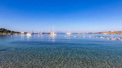 Собствен, пясъчно - чакълест, с дължина от 100 м. Чадъри, шезлонги и матраци на плажа и при басейна – безплатно.