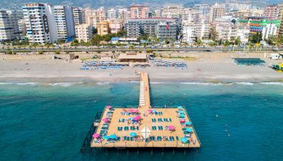 Собствен плаж, чакълест и платформа. Чадъри, шезлонги и матраци на плажа и при басейна- безплатно. Плажни кърпи - безплатно ( взимат се от турска баня 08:00-17:00)