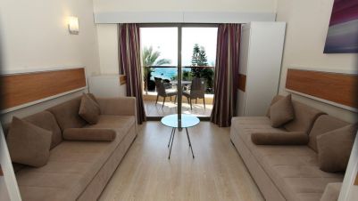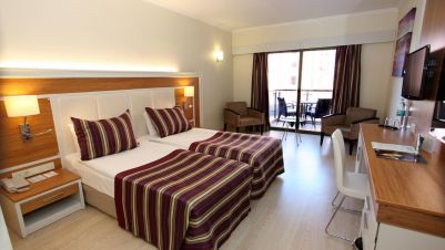 Двойна стая – 28 м2, максимално настаняване 2 възрастни + 1 дете/3 възрастни, спалня или отделни легла, душ/вана, сейф, балкон с изглед към морето.