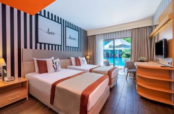 Стаи Main Building: 614 Maing Building Standard Room (изглед градина или море, 27-30 м2), 49 Main Building Family Room (2 спални, баня, изглед градина или море – 38 м2), 16 Main Building Suite Room (спални и всекидневна с изглед градина или море, 50-62 м2).
