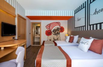 Стаи Aqua Building: 105 Aqua Room (изглед градина или басейн, 27 м2), 17 Aqua Family Room (2 спални, изглед градина или басейн - 45 м2).