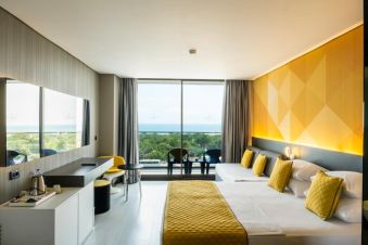 климатик, баня с вана или душ,сешоар, балкон ,мини-бар, телефон, телевизор, ел. чайник, набор за кафе/чай,сейф (безплатно), WiFi интернет (безплатно), room service (платено), смяна на спално бельо - 3 пъти седмично, почистване на стаята - ежедневно, под - ламинат.