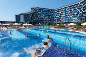 основен ресторант, 3 a la carte ресторанта (с предварителна резервация, безплатно), 8 бара, 2 открити басейна, 1 закрит басейн (полуолимпийски), ТВ зала, лекарски кабинет, магазини, фризьорски салон, 6 конферентни зали (за 50, 200 -750 чов.), Спа център, WiFi (безплатно). Плаж:Собствен пясъчен плаж. Бар на плажа - безплатно. На плажа и при басейна: чадъри, матраци, шезлонги и плажни кърпи - безплатно.