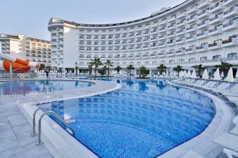 Основен ресторант, 2 а - ла - карт ресторанта (турски и италиански), 2 лоби бара, бар на плажа, бар на басейна, диско бар, търговски център, доктор, тв салон, закрит басейн, открит басейн, детски басейн, 5 водни пързалки, интернет кафе, конферентна зала, фитнес център, тенис на маса, тенис,. За децата: детско меню, детски басейн, детски пързалки, детска площадка, мини-клуб (4-15 год.), детегледачка (платено). Безплатни услуги: турска баня, сауна, парна баня, фитнес, аеробика, аквааеробика, плажен волейбол, баскетбол, тенис на маса, дартс, мини-голф, боча, баскетбол, анимационна програма, безжичен интернет (в лоби). Платени услуги:сейф, масаж, джакузи, игрални зала, интернет кафе, водни спортове, СПА - център.