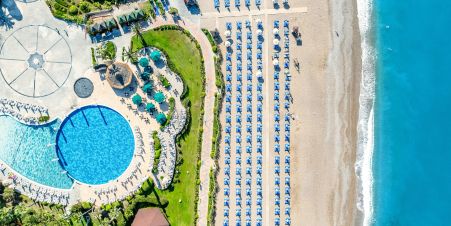 Хотелът се намира на 75 км. от летището в Анталия, на 10км. от центъра на Сиде, на брега на морето. Отворен през 2008г, на площ от 160 000 кв. м., реновиран през 2014г.