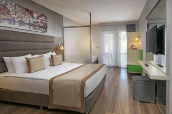 Основен ресторант, а-ла-карт ресторанти (турски, мексикански, италиански (1 безплатно посещение) рибен (15 евро на човек), 6 бара, дискотека, кафе, открит басейн, 2 водни пързалки, амфитеатър, СПА център, анимация, тенис корт, баскетбол, тенис на маса, плажен волейбол, мини футбол, мини голф, водни спортове, вечерна програма. За децата: детски басейн, детска площадка, мини клуб, детска стая, детска занималня, мини диско, стена за катерене, кино, всичко необходимо за бебета срещу запитване като стерилизатори, бебешка храна, детски столчета, ботилки и тн. Услуги срещу заплащане: масажи, различни процедури, химическо чистене, водни спортове на плажа, тенис уроци и оборудване, коли под наем, фризьор, лекар.